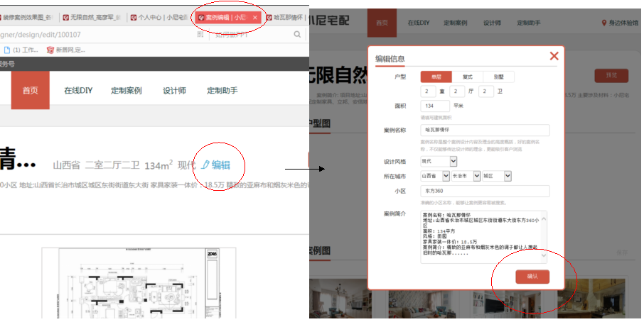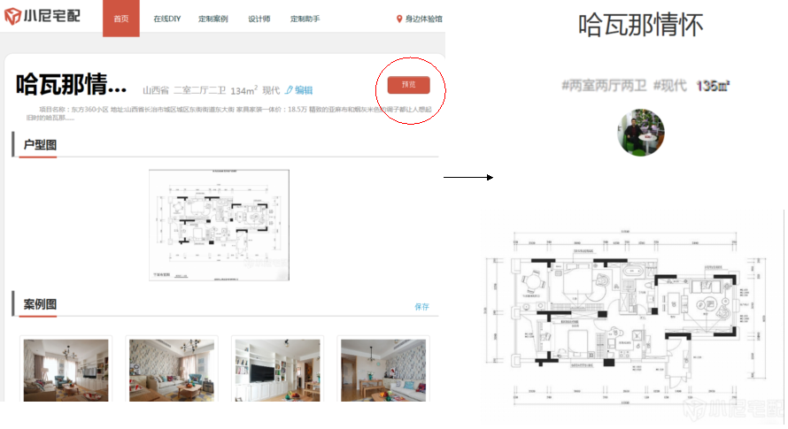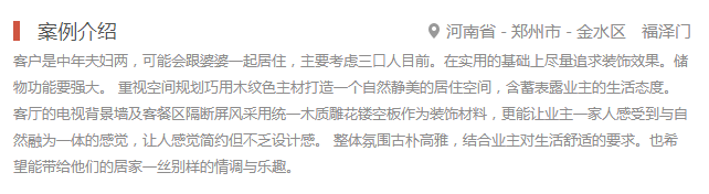 3、案例簡介需包含:項目名稱、地址、家裝家具一體價 (價格標準:阿拉伯?dāng)?shù)字加萬元) 、案例簡介。例如下: