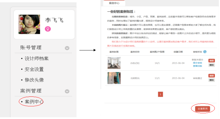 1.設(shè)計師登錄點擊昵稱進入個人信息管理中心。