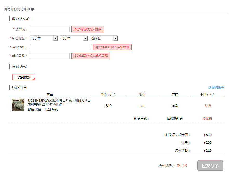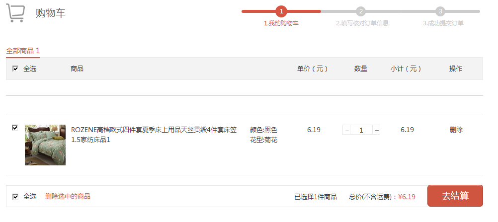 5.點擊去結(jié)算和產(chǎn)品頁面點擊立即購買同樣都會進(jìn)入商品結(jié)算頁面。