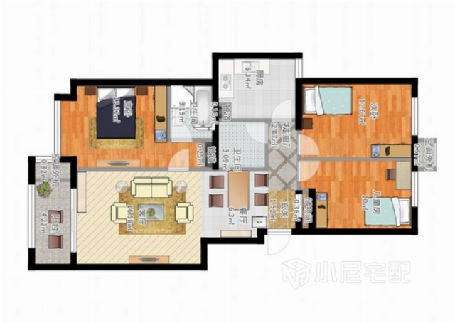 北京 大興 北京城建 海梓府A戶型 三室一廳 兩衛(wèi) 簡約風格,預算20萬