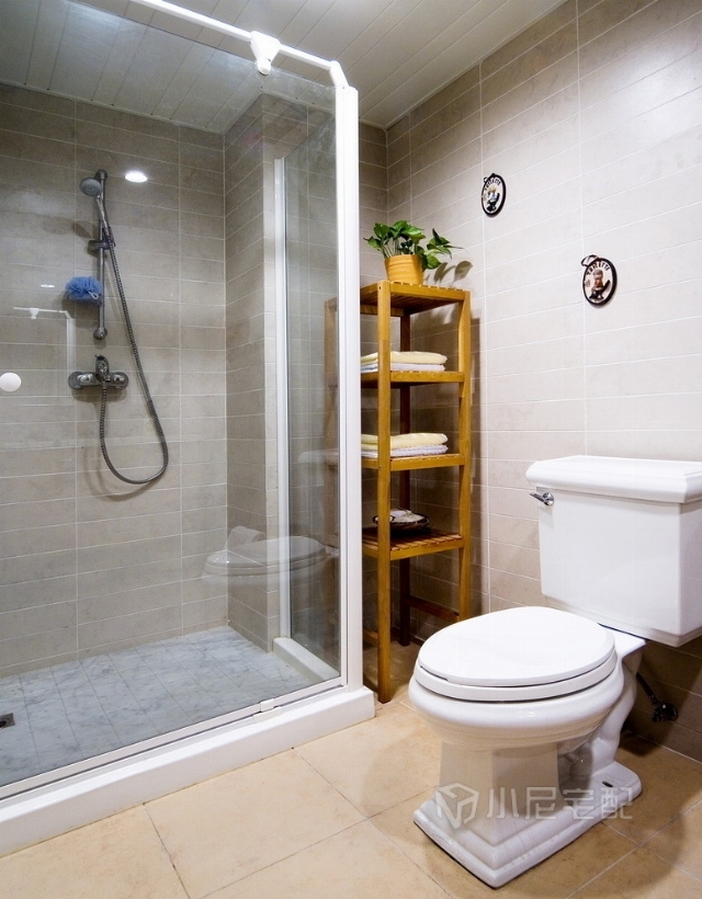 衛(wèi)生間非常簡單,但是該具備的功能都具備了,墻上還做了一個(gè)小小的點(diǎn)綴。