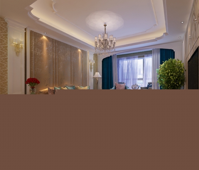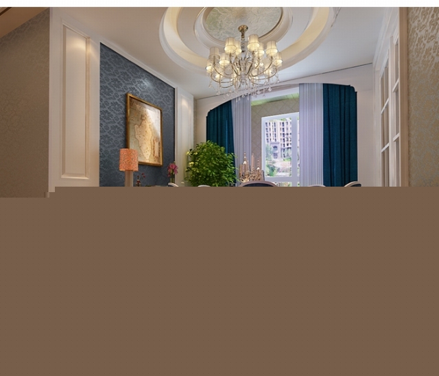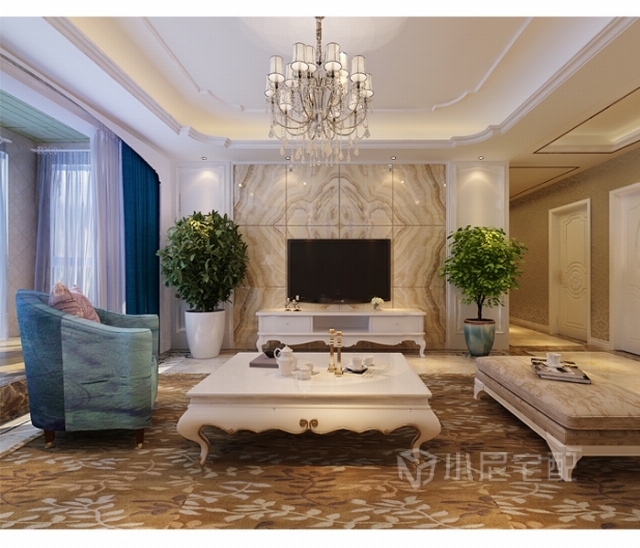 客廳藍(lán)色窗簾和水晶燈的搭配讓整體色調(diào)清爽一些。