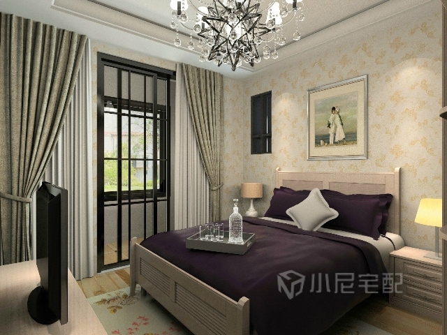 漫天飛花,落英繽紛,淡雅的色彩,圓滑的線條充滿了女性的柔美,營造出溫馨而自然的氛圍。家裝家具一體價:14.5萬。