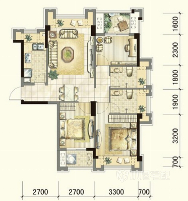 戶主對房子原本的格局非常不滿,拆改的位置有很多。第一步是把次臥打通,改造成小客廳,讓剛回家的人視野開闊。留下一面半墻,隔開客廳與陽臺。陽臺面積超大,充分利用起來,設計成書房,使用玻璃天窗,形成陽光書房,并且能夠照亮沒有窗戶的客廳,良好的采光能使人心情開朗。書房里多余的空間設計出儲藏室。家裝家具一體價:10萬。