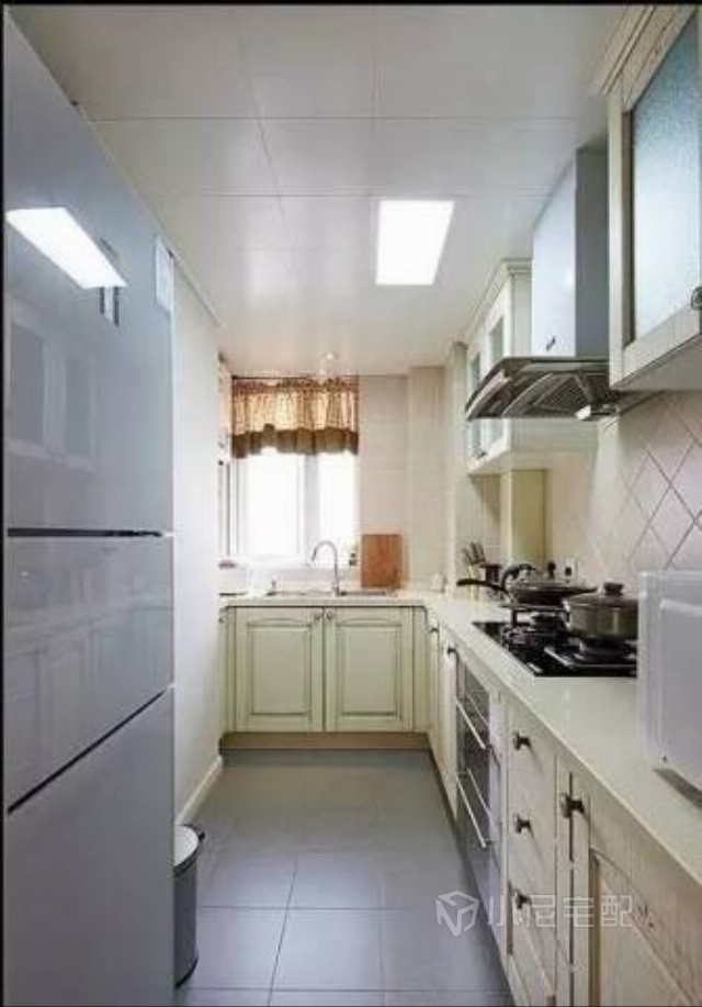 玄關的右手邊是廚房,做舊的櫥柜門板和菱形墻磚是要打造出田園式的烹飪環(huán)境,好讓心情自由放松。