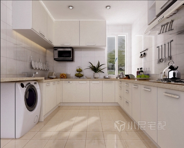 廚房顯得非常寬敞明亮。櫥柜規(guī)中規(guī)矩,沒有浪費(fèi)多余的空間。