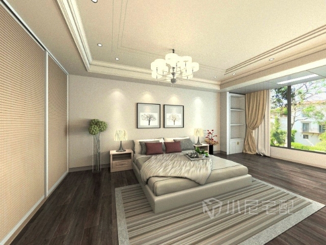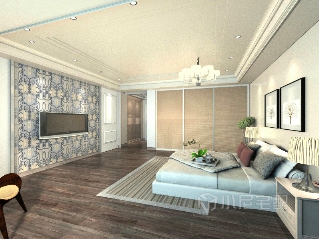 主臥室仍然用到頂?shù)囊崎T衣柜,與床和床頭柜統(tǒng)一色調(diào),彰顯低調(diào),不失大氣。