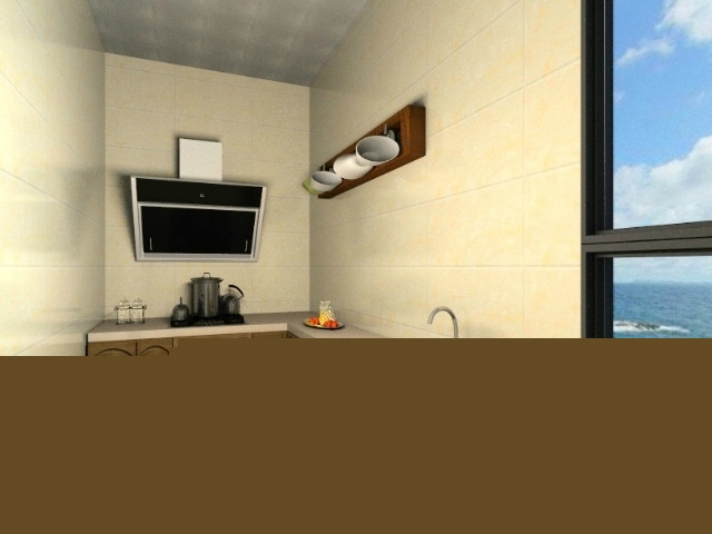 廚房采用了L型櫥柜設(shè)計(jì),將各個(gè)角落都利用了起來(lái)。