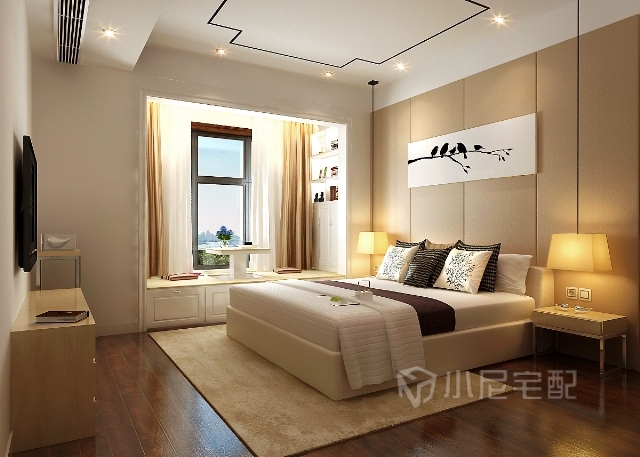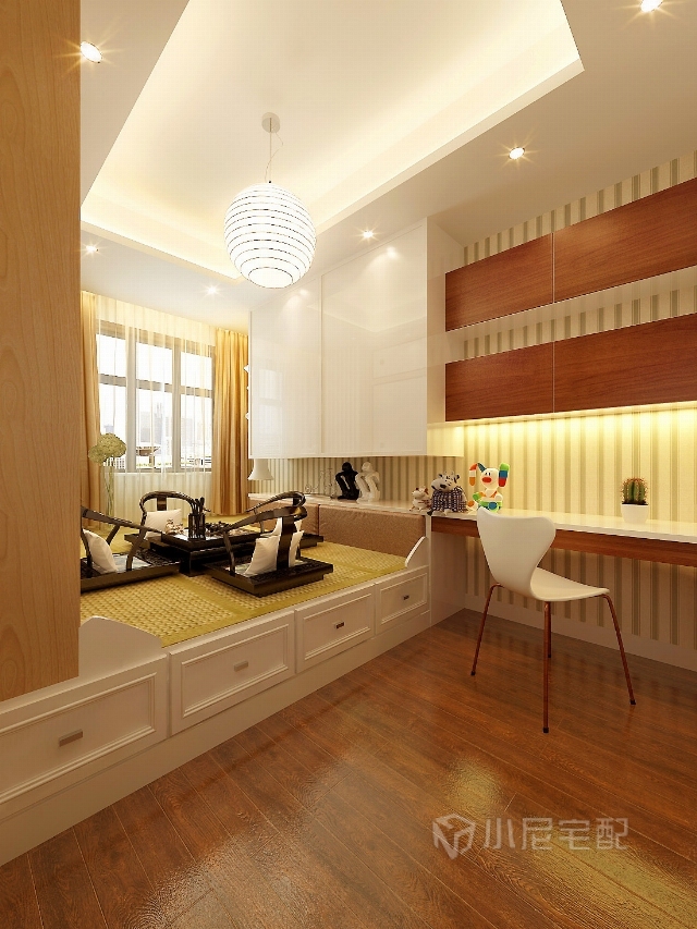 僅僅是一副掛畫就足以襯托出臥室恬靜的氛圍,陽臺的榻榻米可以讓忙碌了一天的心情得到平靜。