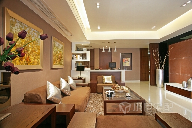 白色和米色的環(huán)境中,加了一些棕色來一起營造出溫馨的客廳。
