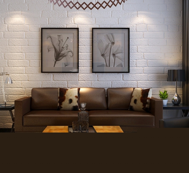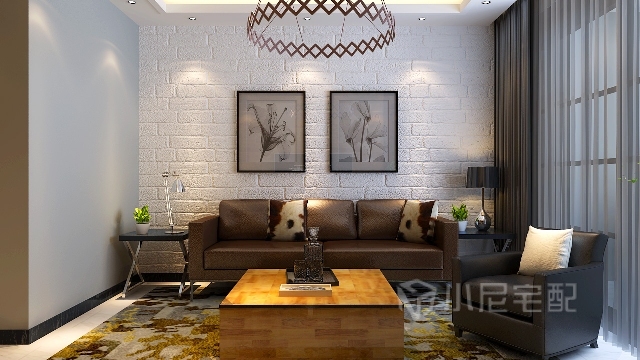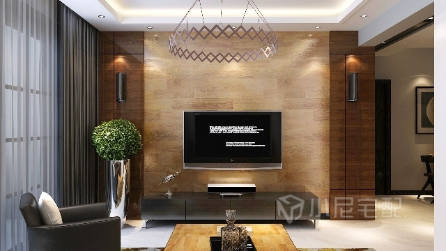 客廳的沙發(fā)與茶幾與背景墻遙相呼應(yīng),渾然一體。