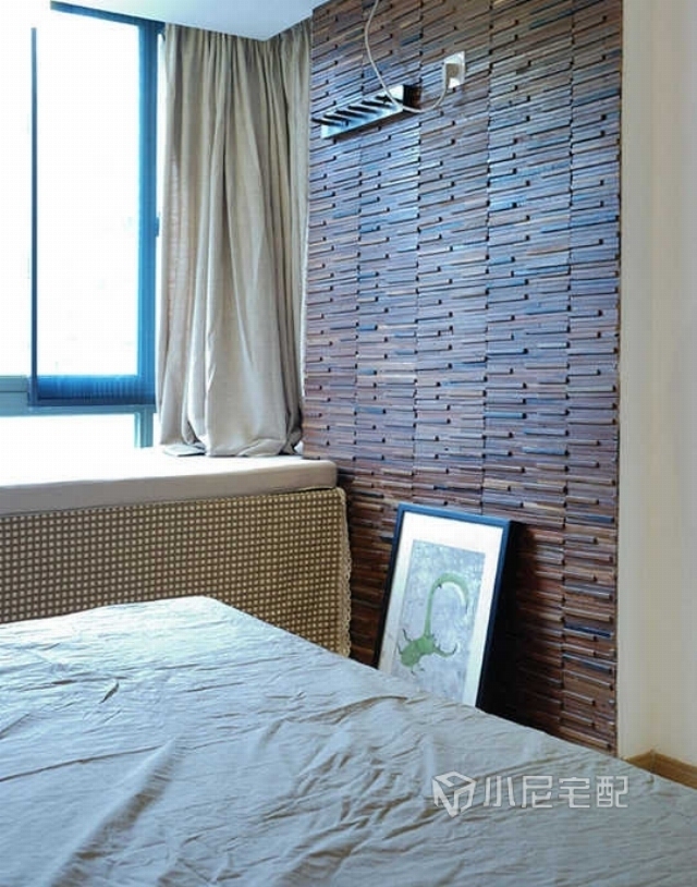 臥室不僅僅是休息的空間,同時可以在床頭增加一整排的吊柜,充分提高了儲物收納空間。