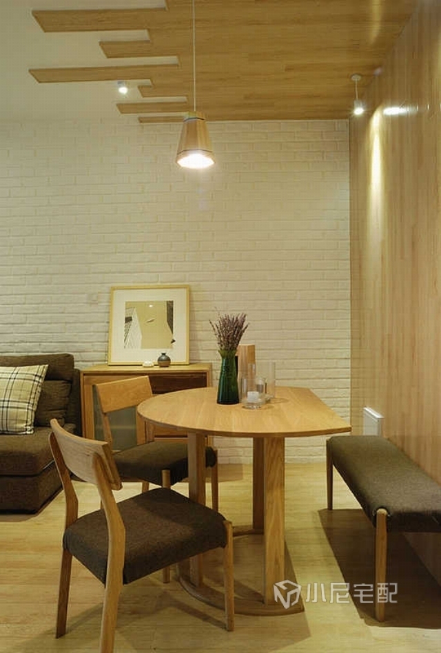 一柜多用的成品邊柜既是餐廳的裝飾柜也是客廳的儲物柜,使客餐廳有了互動性。