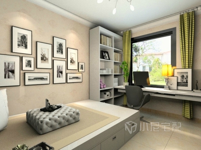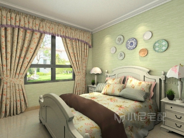 主體綠色的壁紙搭配淺藍色的窗簾,有沒有種小清新的感覺?