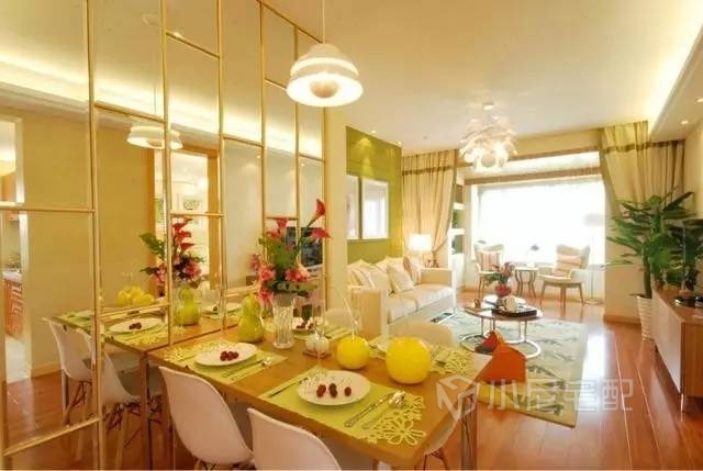 精心擺設(shè)的餐桌,左邊的鏡子解決了小小的餐廳略顯擁擠的缺點(diǎn)。