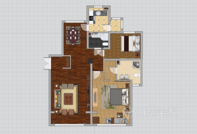 中式的裝修,搭配中式家具,更顯莊重優(yōu)雅。家裝、家具一體價19.8萬。