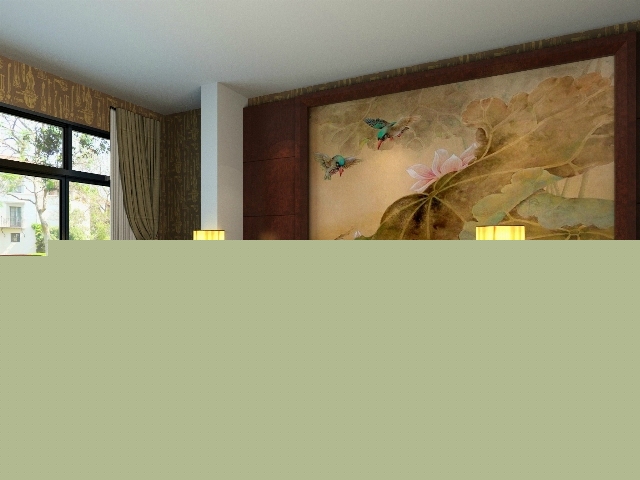 深色的床頭搭配中式的背景畫,更能體現(xiàn)出東方的韻味。