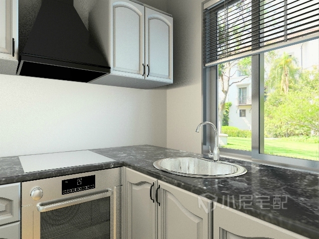 白色的櫥柜,搭配黑色的臺面更顯潔凈,時尚。