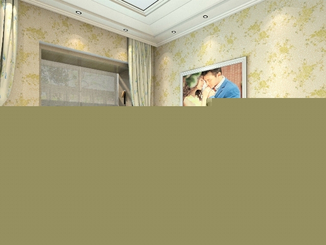 臥室的采光非常好,墻上還掛著他們的結(jié)婚照。