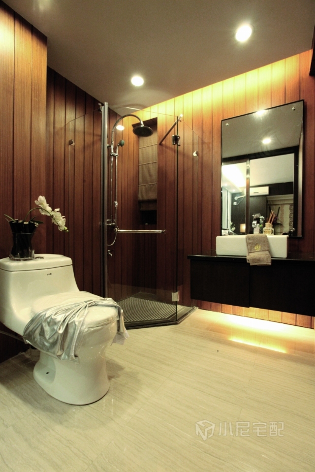 衛(wèi)生間用簡單的木條做搭配,空間變得整齊但又不死板。