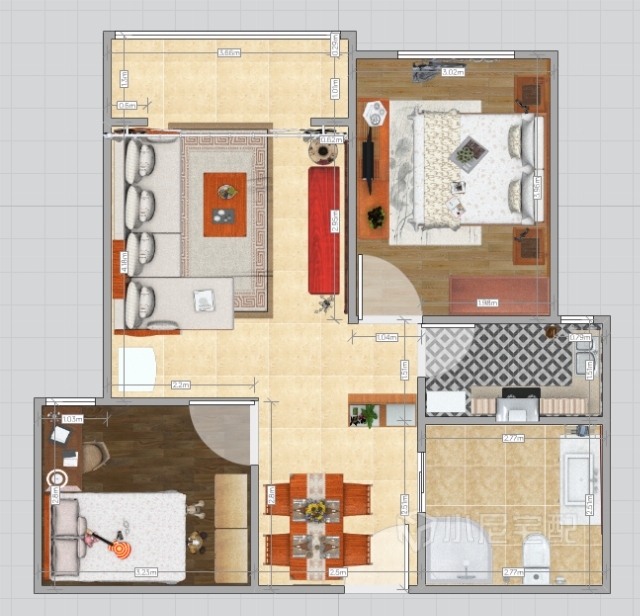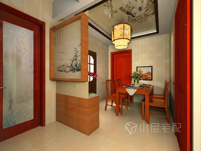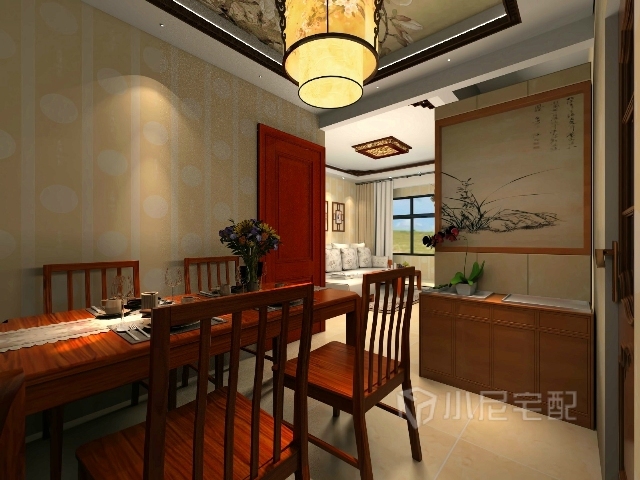 空間的層次感,在需要隔絕視線的地方,則使用中式的屏風(fēng)或窗欞、中式木門、工藝隔斷、簡(jiǎn)約化的中式“博古架”,通過(guò)這種新的分隔方式,單元式住宅就展現(xiàn)出中式家居的層次之美