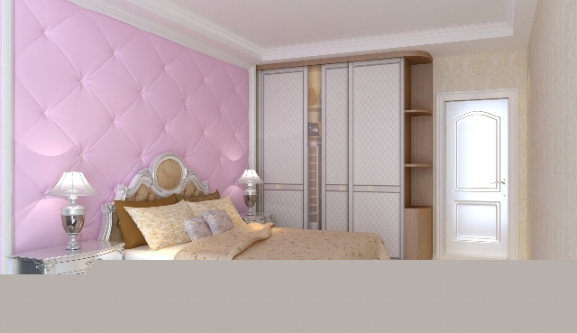 床頭背景采用了粉色的軟包,整個(gè)房間既溫馨又浪漫!