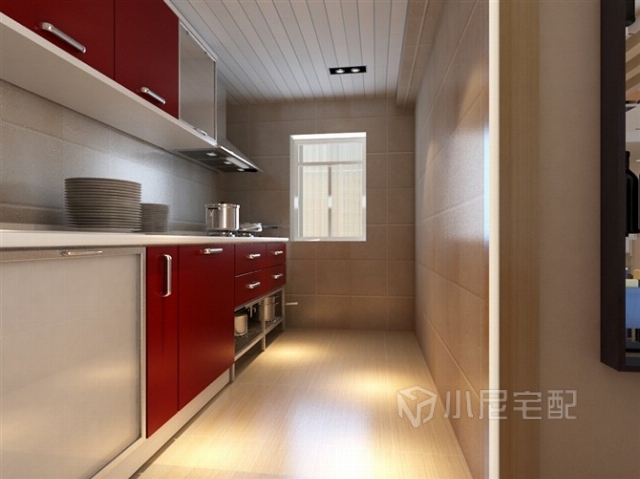 烤漆玻璃做的紅色櫥柜,既美觀又實(shí)用。