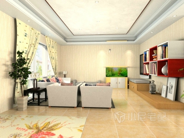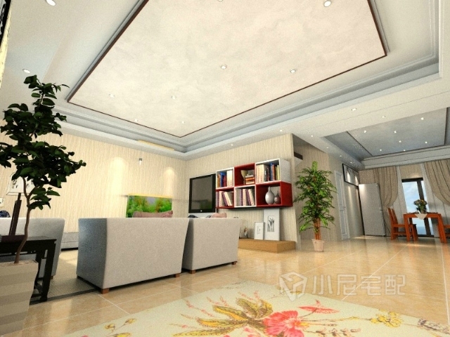 書架電視墻的完美結(jié)合,充滿生機的魚缸,寬敞舒適的組合客廳!