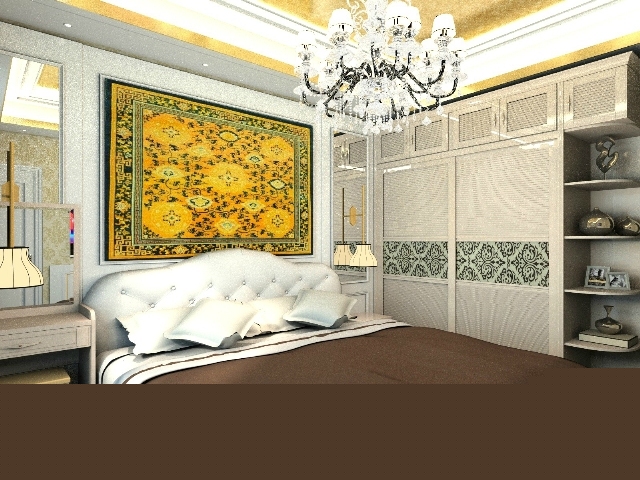 艷麗的床頭背景讓空間整個(gè)明亮了起來。