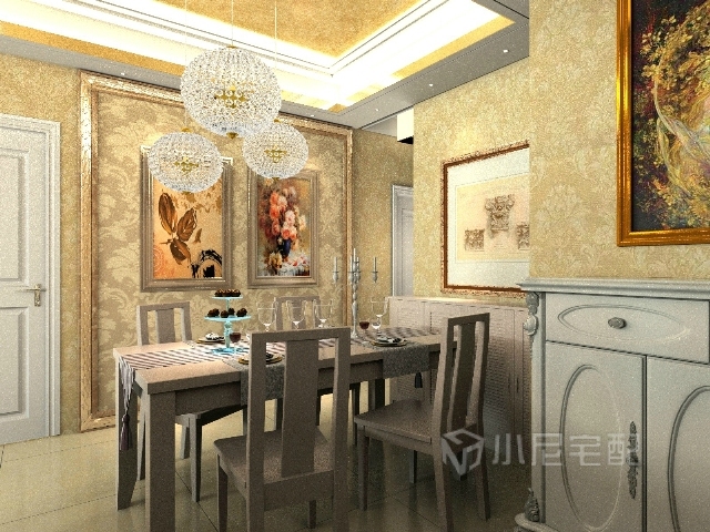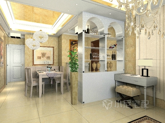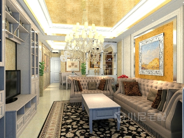 豪華大型吊燈略低的高度,營造出較為突出的裝飾效果。