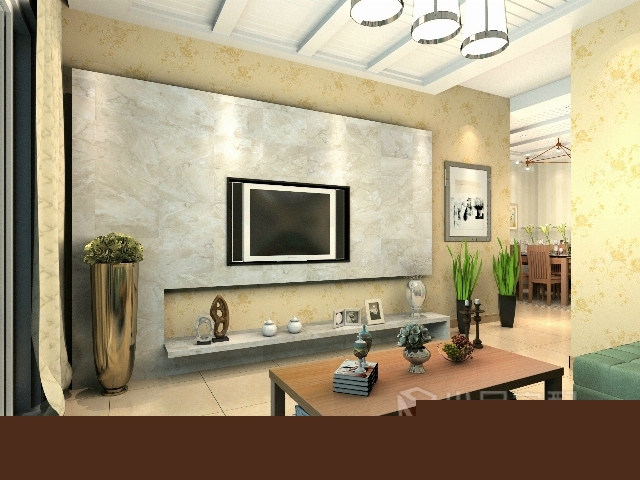 石材的背景墻很大氣,很耐看。