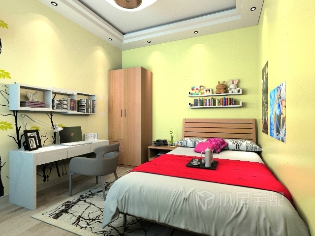 臥室的布床很舒服, 臥室的背景色是大面積的暖黃