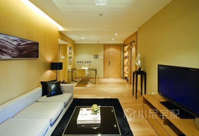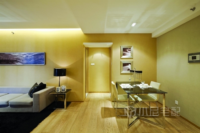 鋪設(shè)淺色木地板,選用個(gè)深色家具穩(wěn)定空間。