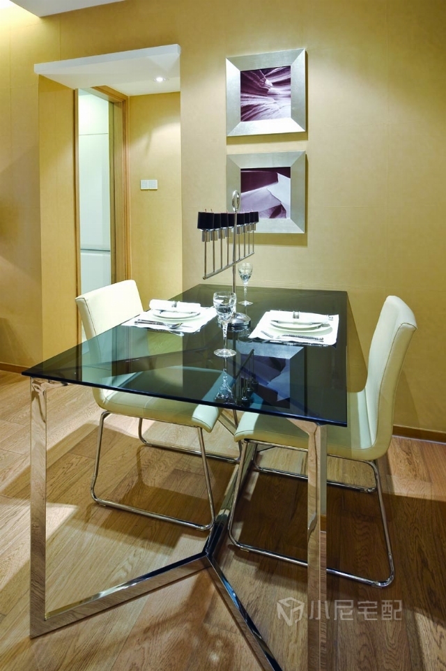 黑色烤漆玻璃餐桌增添了時(shí)尚感。