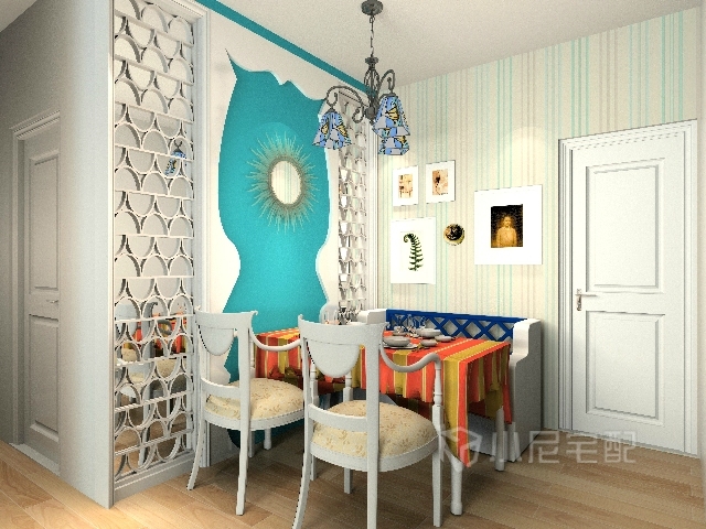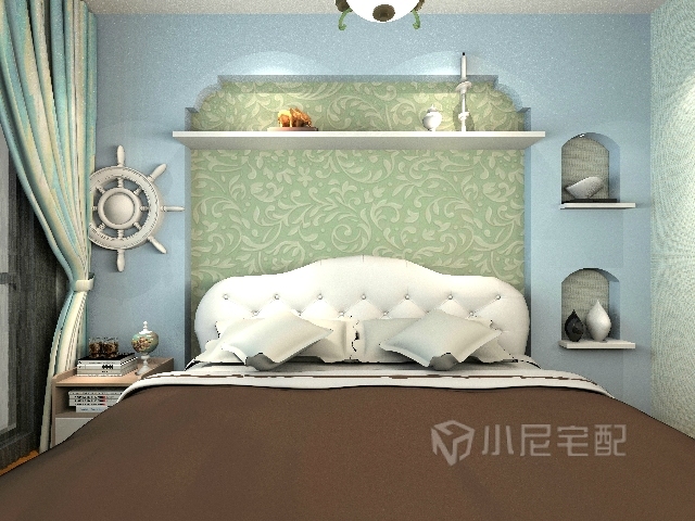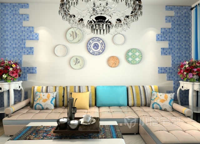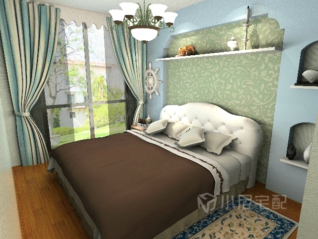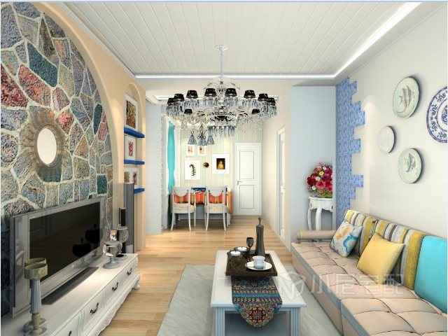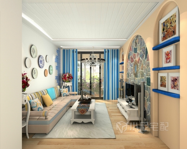 以海洋的蔚藍(lán)色為基色調(diào)的顏色搭配方案,自然光線的巧妙運(yùn)用,富有流線及夢(mèng)幻色彩的線條等軟裝特點(diǎn)來表述其浪漫情懷。