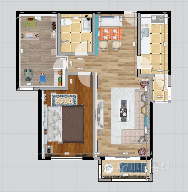 本套案例選擇直逼自然的柔和色彩,在組合設(shè)計(jì)上注意空間搭配,充分利用每一寸空間,且不顯局促、不失大氣,解放了開放式自由空間;家裝家具一體價(jià):12.6萬。