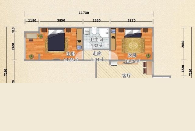 主臥:現(xiàn)代簡約的布置,溫馨的色調(diào)。