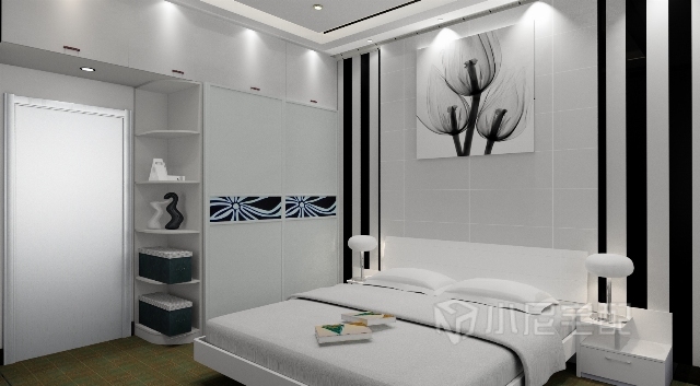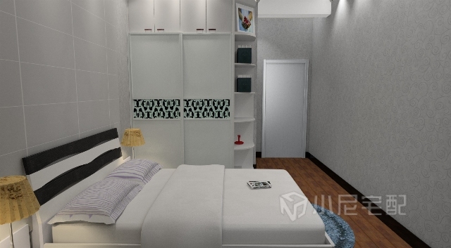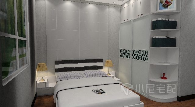 衣柜、弧形柜、頂柜,使小戶型臥室也有足夠多的儲物空間。