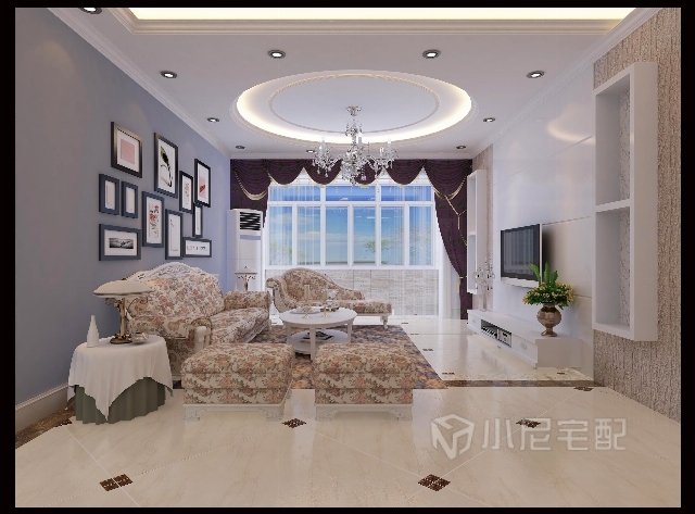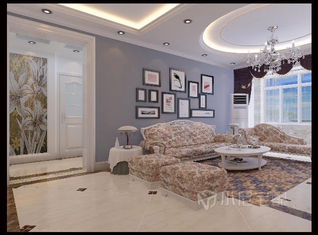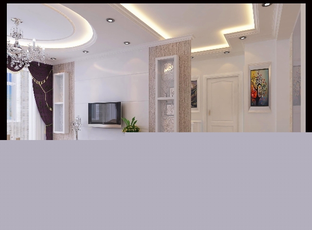 客廳吊頂以圓形為基準,采用歐式線條顯示其美感