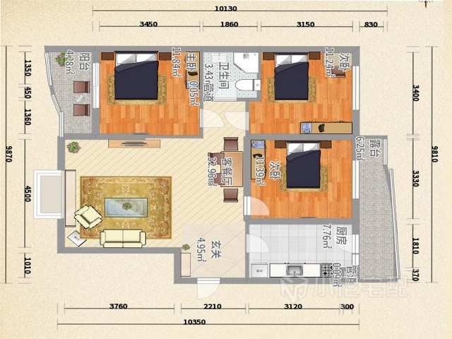 次臥同樣是軟膜天花,單相對偏暖,更適合女孩居住