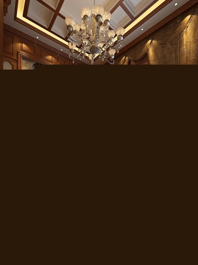 客廳頂部用大型燈池,有花紋的石膏線(xiàn)勾邊