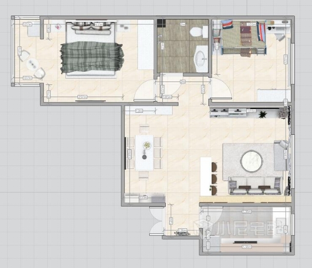 門(mén)廳進(jìn)門(mén)是走廊,連接著客廳餐廳及臥室