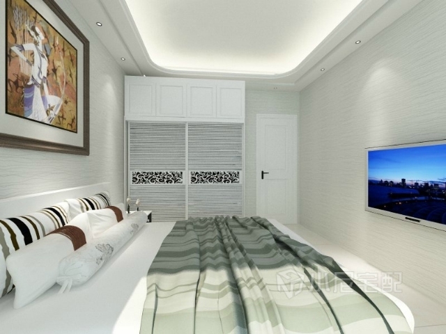 電視墻比較簡(jiǎn)單,幾個(gè)不同層次的掛柜放一些裝飾擺件,趣味十足,一排抽屜柜增加實(shí)用性。