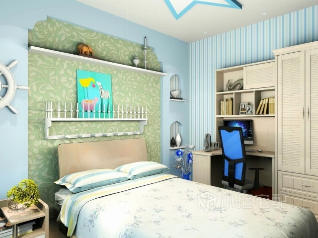 小尼宅配這套兒童家具,加上藍(lán)色的計(jì)調(diào),清新、快樂