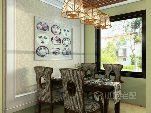餐廳。獨(dú)特的吊燈為這個(gè)小小的餐廳增加美感。