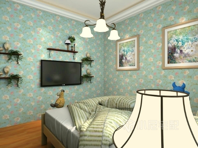 這是一個美麗姑娘的房間,墻上了綠植成了整個房間的亮點。