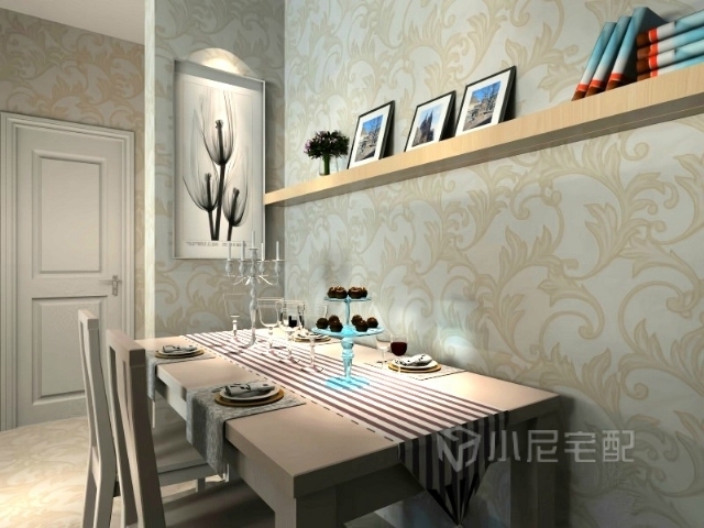 花色的沙發(fā)搭配白橡色的茶幾和暖色的壁紙,更加的溫馨,自然