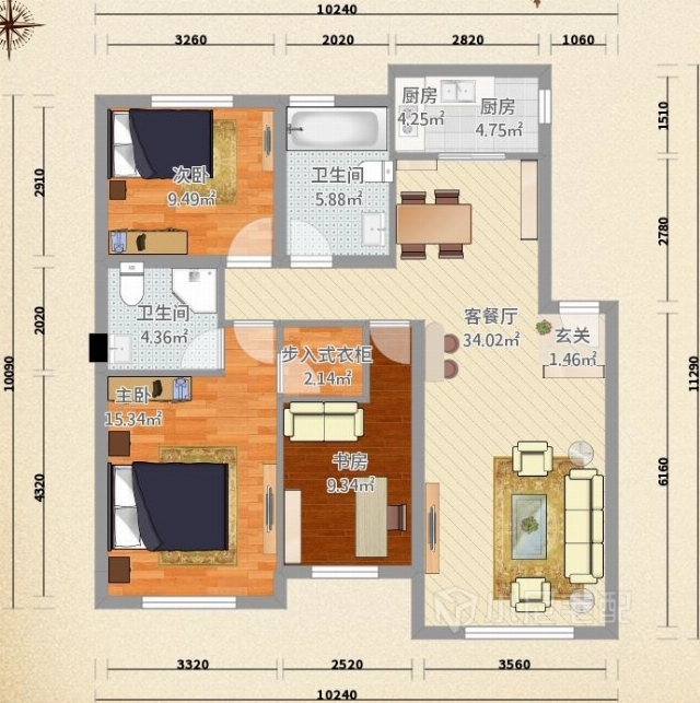 這個小尼宅配套裝木質(zhì)統(tǒng)一,很復(fù)古個性,和空間都很到位