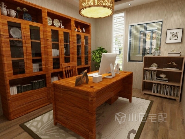 主人需要工作的時候來到書房,看書,寫字,需要計算機,都有,這個小尼宅配書房套裝體現(xiàn)出一種博大精深
