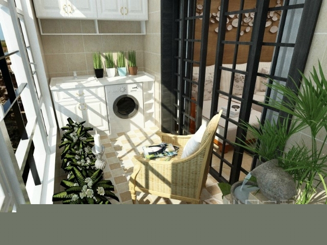 看又是很多植物,很了解主人特別喜愛植物,充滿了陽光燦爛照射在洗衣臺,等待中可以坐在椅子上看一看窗外,很方便又享受的